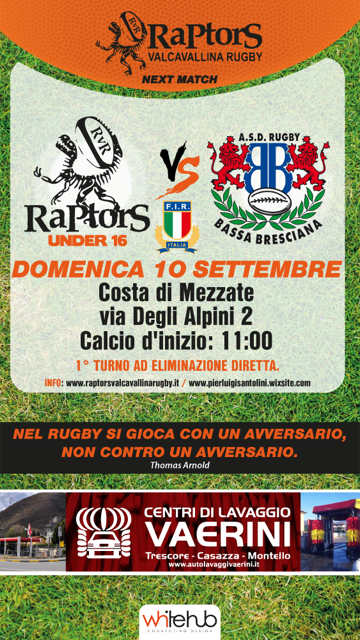 Rugby Varese - Raptors 38 a 28 (6-4)La partita con il Varese ha indicato una serie di problematiche tattiche e tecniche (meno) che sono inversamente proporzionali...